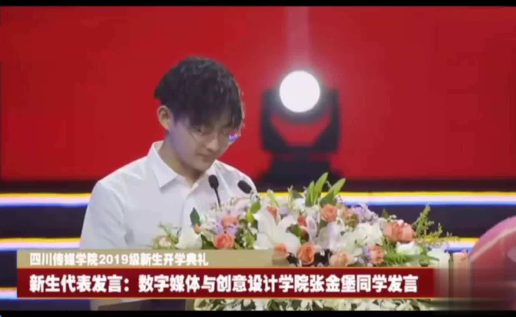 顶着郭德纲徒弟的光环,张金堡从入学就受到了关注——他代表全体2019级的新生在入学仪式上发表了演讲,在演讲中他多次提到恩师郭德纲。自豪之情溢于言表;他还带领全体新生宣读了入学誓词。